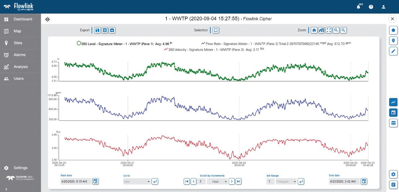 Flowlink Cipher, en tant que solution infonuagique, réduit considérablement le temps et les ressources nécessaires à la gestion de tous les dispositifs, événements, données et techniciens de support liés aux sites d’eaux usées. Avec le chiffre Flowlink, il n’est pas nécessaire d’être physiquement sur place pour identifier les événements importants. Les données de plusieurs sites sont disponibles en tout temps depuis n’importe quelle connexion Internet, avec toutes les informations pertinentes stockées et gérées via une plateforme centralisée unique. La capacité élargie de stockage de données inclut maintenant des photos et des vidéos pour améliorer l’analyse du site. Les tableaux de bord et les vues cartographiques qui économisent du temps sont faciles à configurer et sont pris en charge par des outils d’analyse infonuagiques.